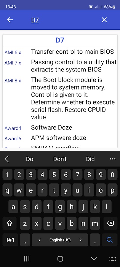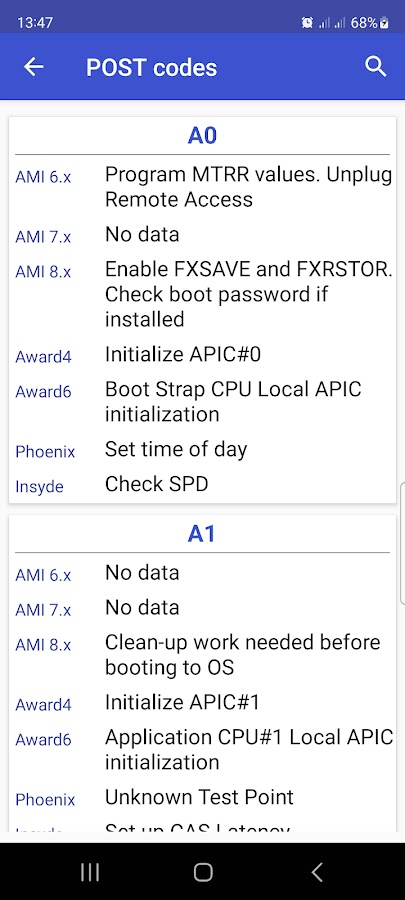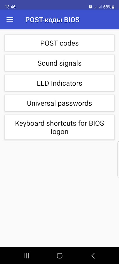 Скачайте приложение POST-коды BIOS для Android бесплатно - последняя версия (2.3) уже доступна для установки на ваш телефон или планшет.