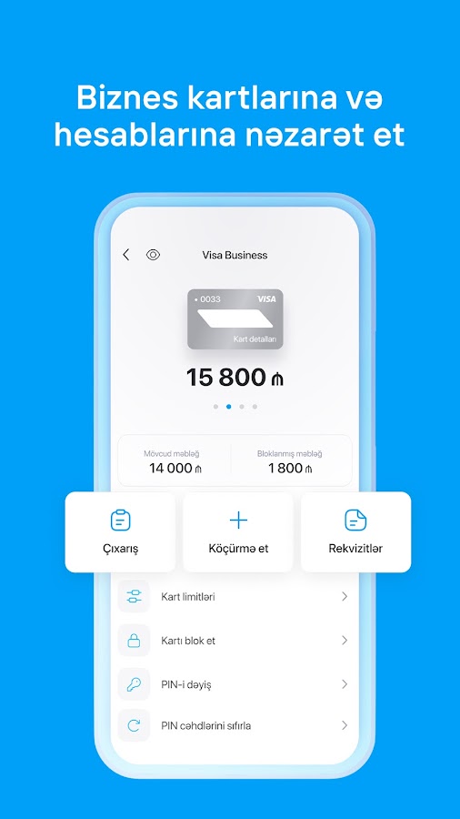 Приложение Birbank Biznes поможет вам в финансовых вопросах, бизнес-кредитовании, переводах и т.д. Теперь вы можете контролировать ваши счета в долларах США, манатах, евро и другой валюте непосредственно из телефона.