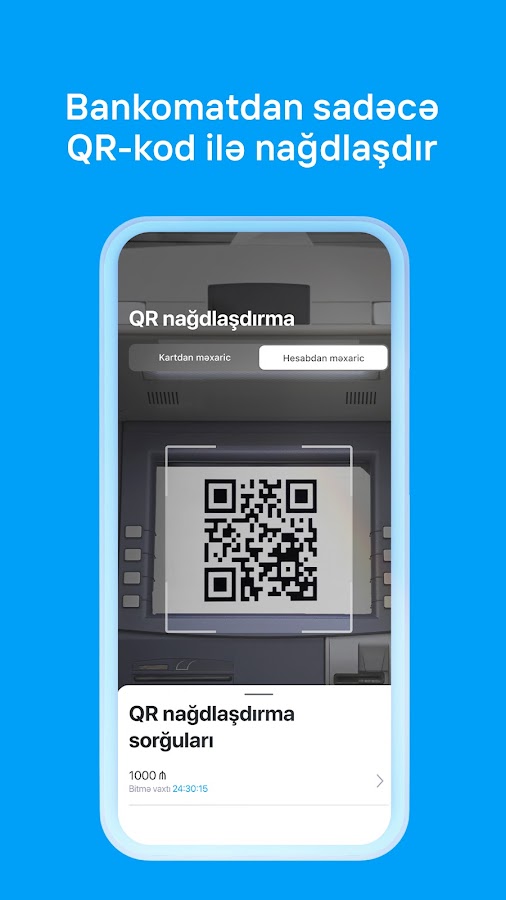 • Простое и удобное обналичивание с карточного или текущего счетов при помощи QR-кода;