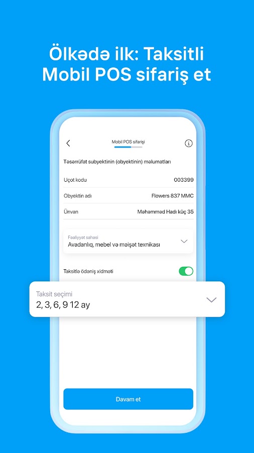 • Заказ мобильного POS для приема платежей через телефоны с ОС Android, а также функция рассрочки;