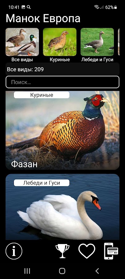 ПРИЛОЖЕНИЕ СОДЕРЖИТ записи голосов 223 ВИДОВ ПТИЦ, наиболее широко распространенных на территории Евразии (список видов можно посмотреть здесь https://ecosystema.ru/04materials/guides/mob/and/19manok_eu.htm).