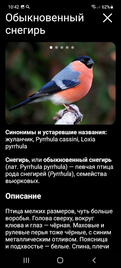 ФОТОГРАФИИ И ОПИСАНИЯ ПТИЦ