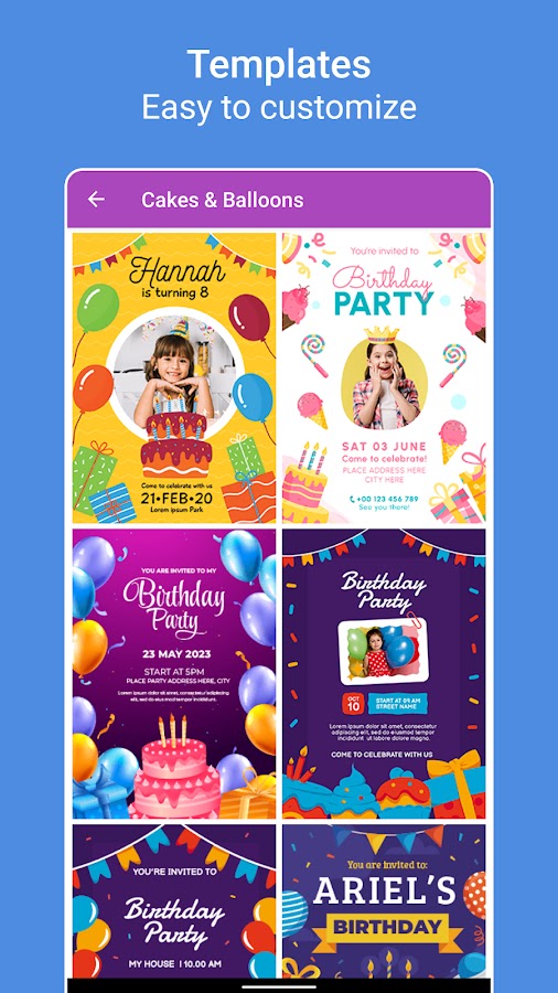 Пригласите своих друзей и членов семьи с приглашениями на приглашение на день рождения.
