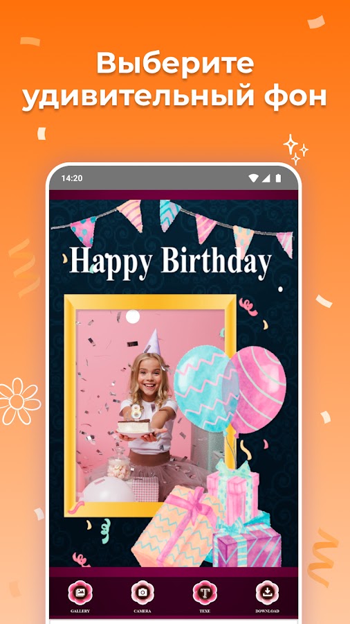 СОЗДАЙТЕ коллекцию HD фотографий дня рождения через это приложение. Порадуйте близких и любимых с наилучшим пожеланиями и красивыми изображениями.