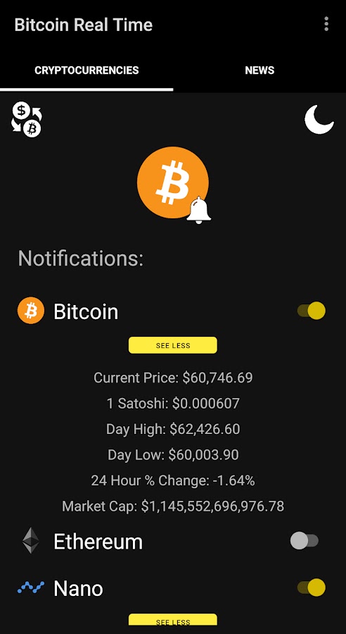 Bitcoin Real Time — это приложение, которое показывает цену Биткойна и других криптовалют в режиме реального времени в ваших уведомлениях без необходимости открывать приложение.