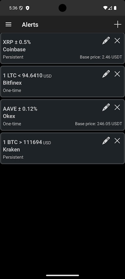 — Умные оповещения о ценах: целевые показатели, процентное изменение и пересечение уровней — отображаются мгновенно.