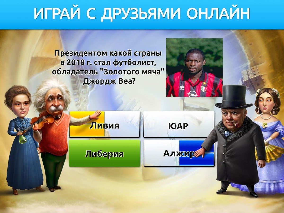 • Проверьте свои знания в 5 различных категориях: история, география, искусство, спорт и наука