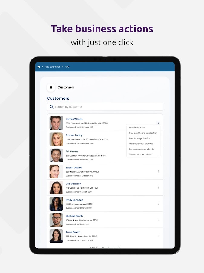 Мобильное приложение BizAgi позволяет Вам выполнять и контролировать свои автоматизированные бизнес-процессы с вашего мобильного телефона, помогая вам оцифровывать вашу организацию со скоростью молнии. Построить один раз, работать в любом месте: открыть платформу, которая обеспечивает оптимизированный пользовательский опыт на любом устройстве.