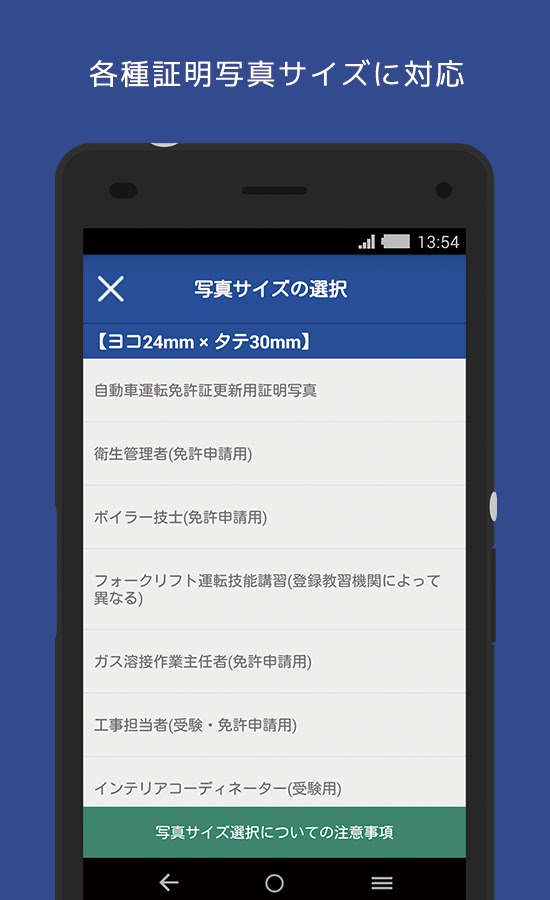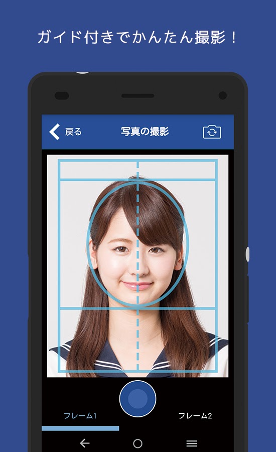 何度でも撮り直すことができ、お気に入りのショットを証明写真に使えます。