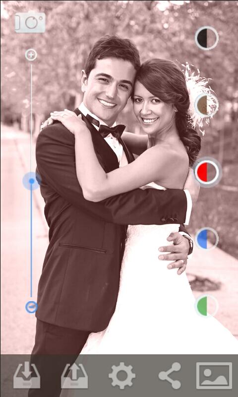 Вы можете не только делать классические черно-белые фотографии, но также придать им ностальгический вид. Есть 4 дополнительных монохромных фото-эффекта, доступных в этом приложении, которые помогут вам создать художественный образ: сепия, красный, зеленый и синий. Существует также контрастный слайдер, который придает красивый оттенок фотографиям.