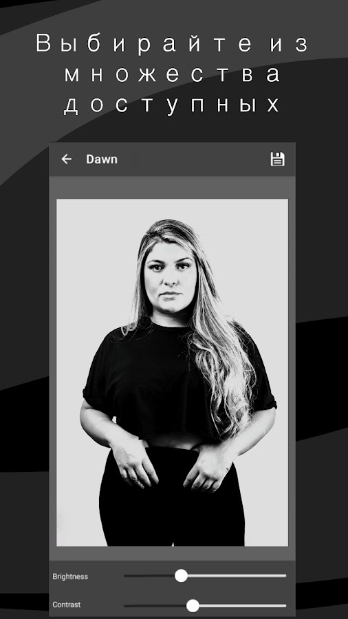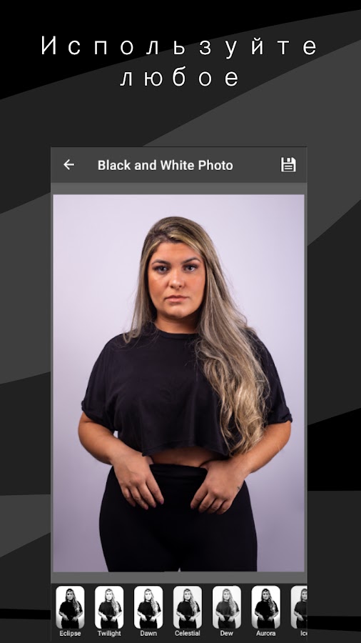 В этом приложении есть несколько цветных фильтров изображений, которые могут преобразовывать ваши фотографии в оттенки серого или в черно-белые.