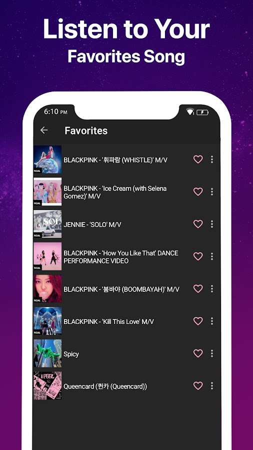 Blackpink Songs — совершенно бесплатное и очень простое в использовании приложение для музыкального проигрывателя. Песни Blackpink упрощают поиск всех песен вашего кумира.