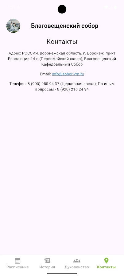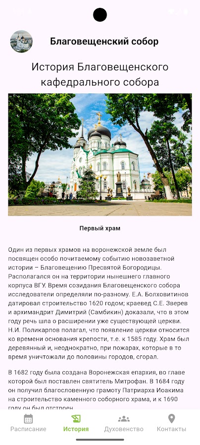 Мобильное приложение позволяет получать актуальную информацию Благовещенского кафедрального собора г. Воронежа Воронежской епархии Московского Патриархата Русской Православной Церкви с официального сайта собора https://sobor-vrn.ru. Требуется подключение к сети Интернет.