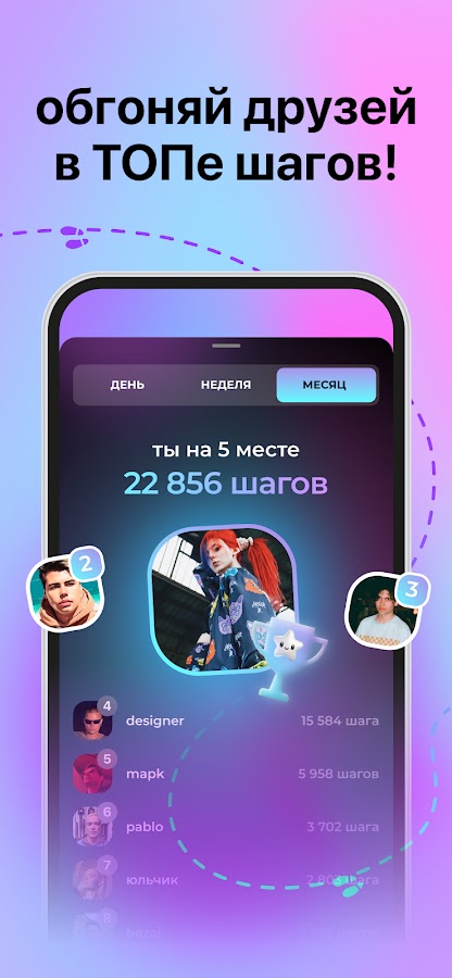 • Счётчик шагов: соревнуйся с друзьями, кто больше ходит
