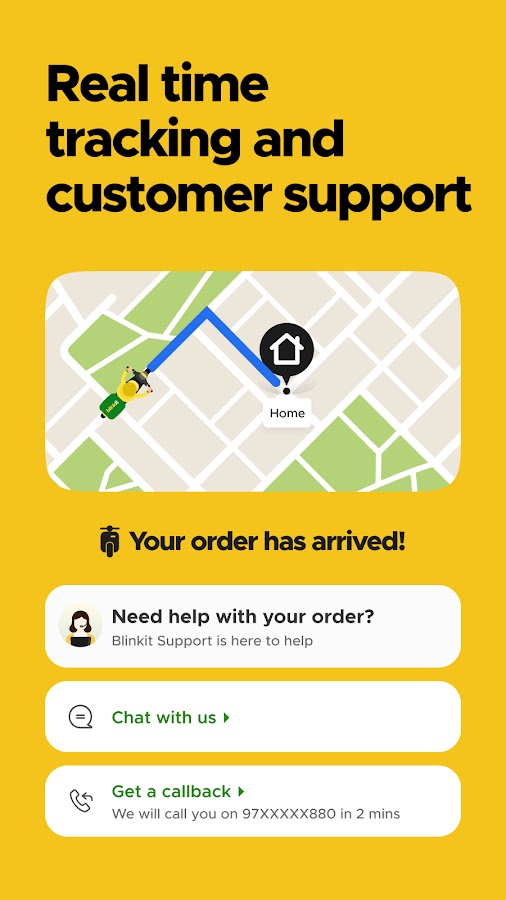 Средняя скорость движения курьеров Blinkit (ранее Grofers) составляет 20 км/ч, так как у нас есть пункты доставки продуктов каждые 2 км, чтобы обслуживать вас.