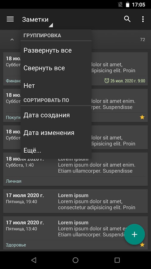 — Сортировка заметок по дате создания, дате изменения, заголовку и папке