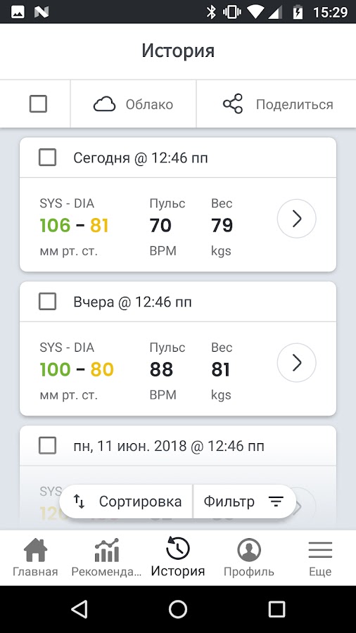 — Индекс массы тела (ИМТ), среднее артериальное давление (САД) и частота пульса рассчитываются автоматически.