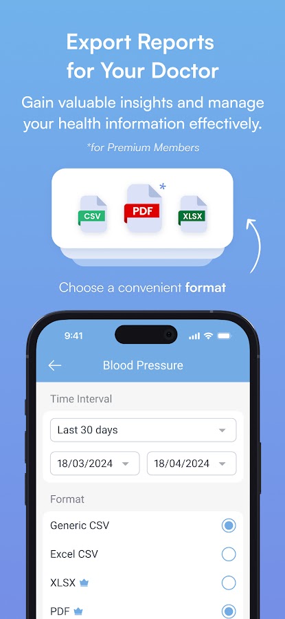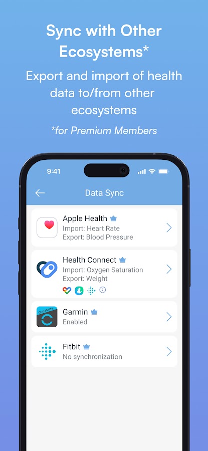 Приложение Blood Pressure Diary от MedM является бесплатным, с базовыми функциями, доступными всем пользователям. Премиум-участники, кроме того, могут синхронизировать выбранные типы данных с другими экосистемами (такими как Apple Health, Health Connect, Garmin, Fitbit), делиться доступом к своим данным о здоровье с другими доверенными пользователями MedM (членами семьи или опекунами), настраивать уведомления для напоминаний, пороговых значений и целей, а также получать эксклюзивные предложения от партнеров MedM.