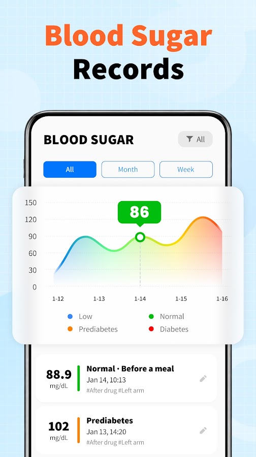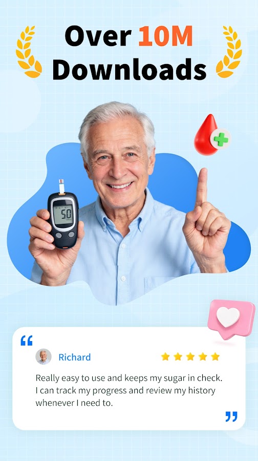 Загрузите это приложение прямо сейчас! С ним вам будет удобнее и проще записывать, анализировать и контролировать свой уровень глюкозы в крови. Это приложение можно использовать в качестве помощника по отслеживанию сахара в крови, который лучше поможет вам следить за своим состоянием здоровья, предотвращать свой диабет или справляться с ним.