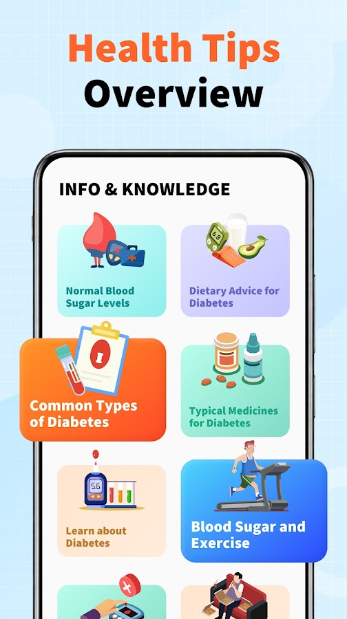 В нашем приложении есть все, что необходимо вам для слежения за своим уровнем сахара в крови, включая научные сведения и советы по профилактике диабета и поддержанию здоровья.