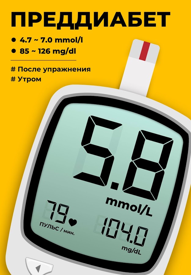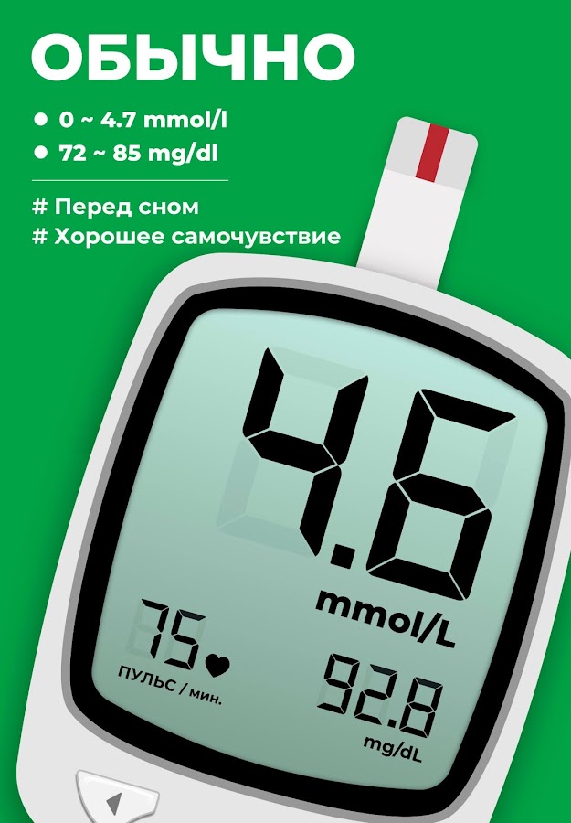 📖 Получение автоматически рассчитываемых уровней сахара в крови. Вы сможете легко и просто узнать свое медицинское состояние – норма, преддиабет или диабет.