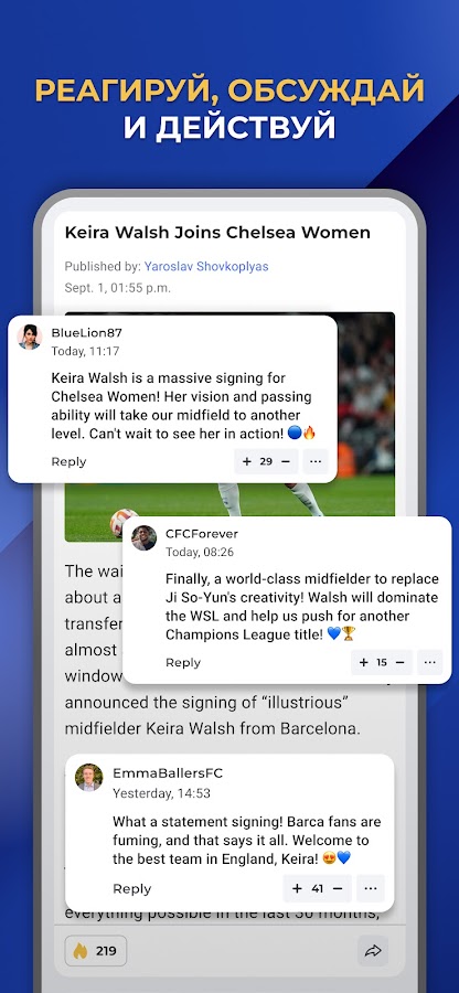 Чаты, комментарии, опросы, блог-платформа для публикации своих материалов — цельное футбольное пространство.