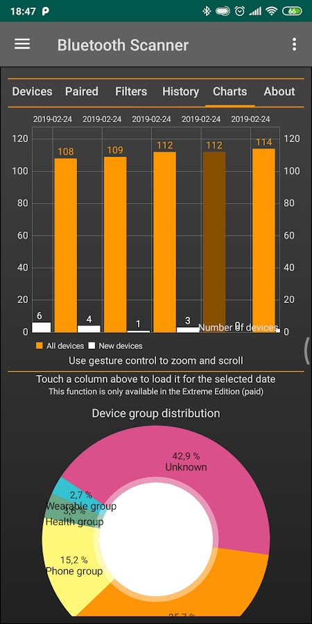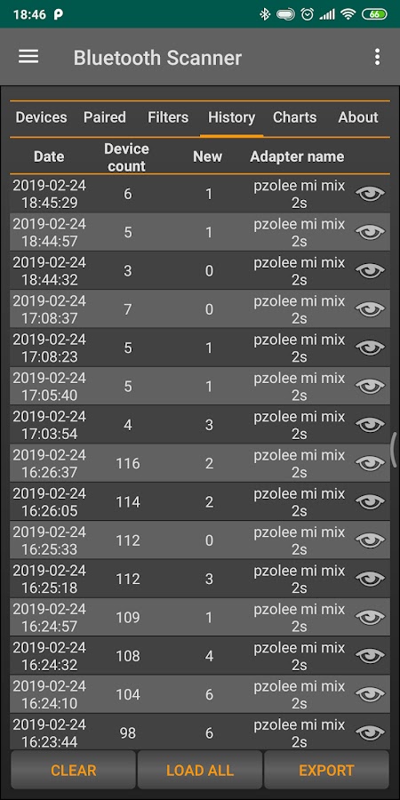 — Воспроизведение любого проведенного ранее сканирования, просмотр любых устройств Bluetooth в прошлом