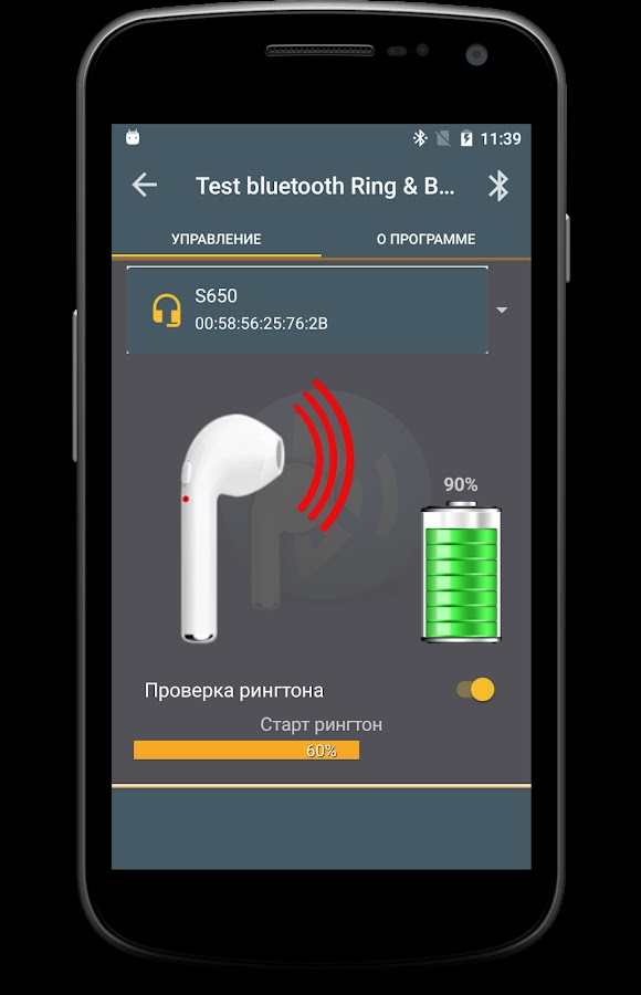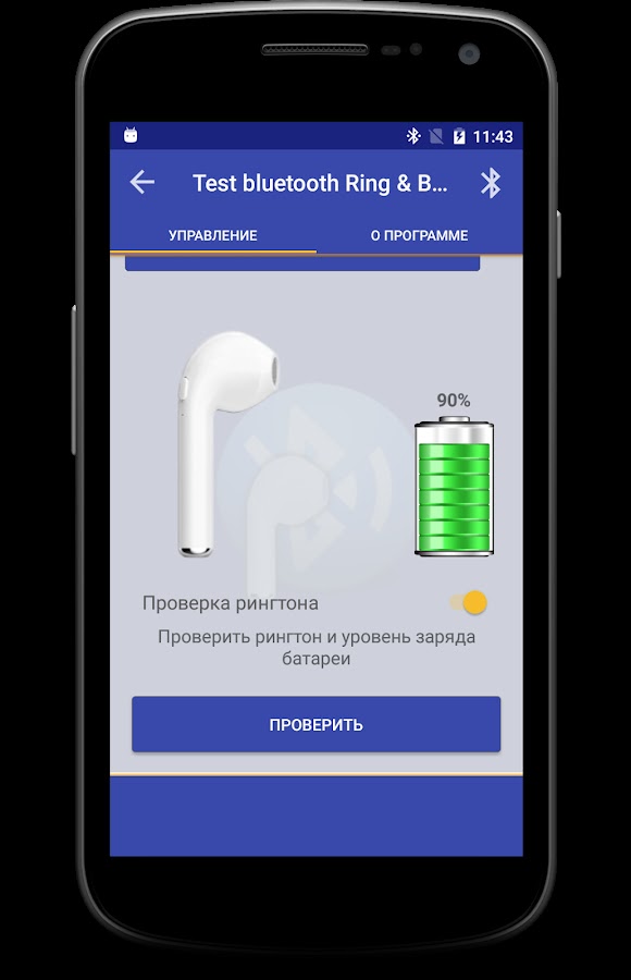 С помощью приложения «Контроль батареи и сигнала вызова блютус гарнитуры» вы можете быстро проверить сигнал вызова гарнитуры и узнать уровень заряда батареи блютус аудио устройства.