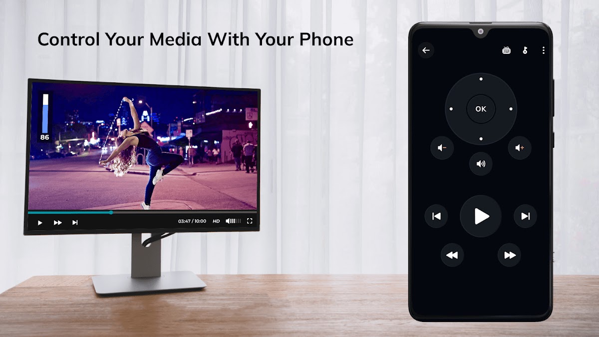 — Управляйте своими медиа, такими как воспроизведение, пауза, вперед, назад, остановка и многое другое.