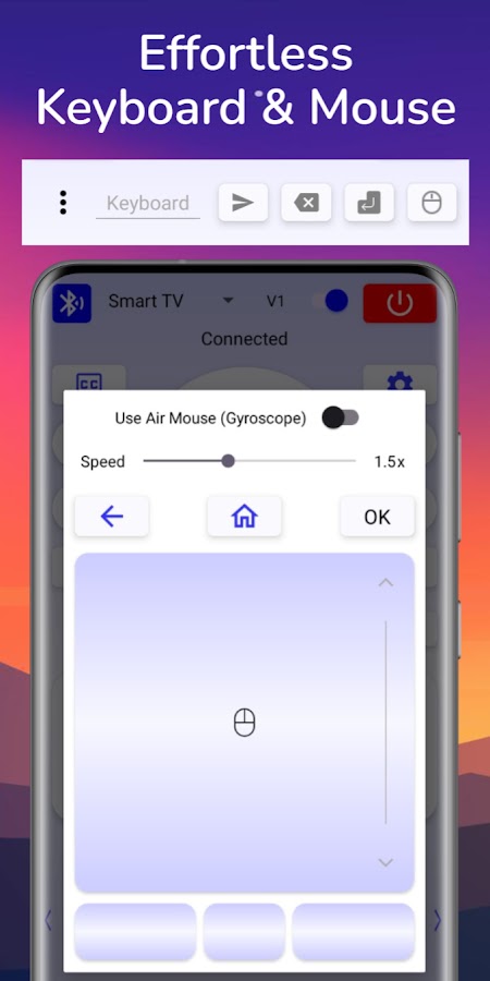 Беспроблемное подключение по Bluetooth и удобная навигация и ввод текста на подключенных устройствах. Это многофункциональное приложение также предоставляет прямые ярлыки для запуска популярных приложений, таких как YouTube, Netflix, ZEE5 и других.