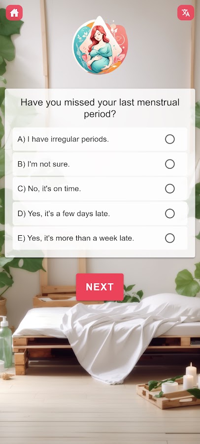 С помощью нескольких быстрых и простых вопросов Блюм проводит первоначальную оценку возможной беременности. Это практично, конфиденциально и всегда под рукой!