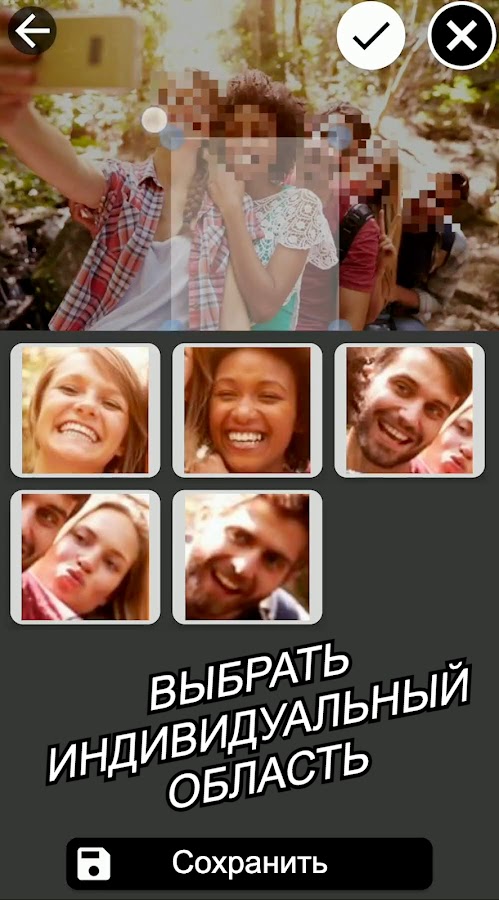 — Нажмите на обнаруженные лица, чтобы размыть / разблокировать