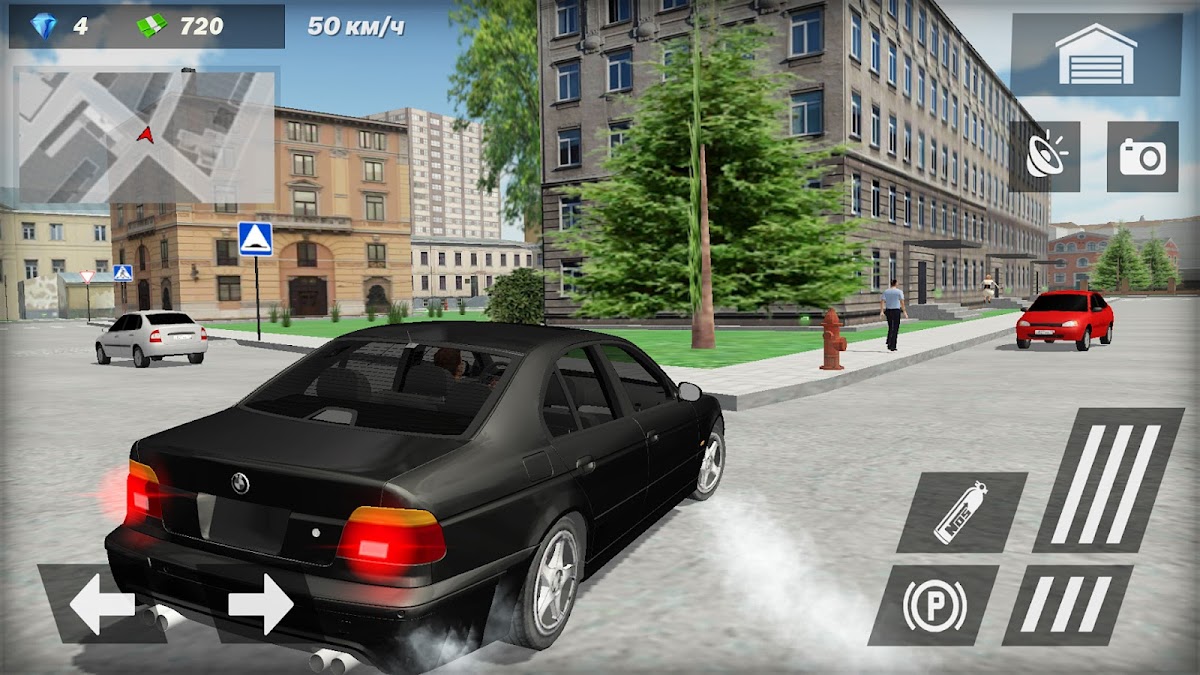 Симулятор БМВ игра про машину в свободном городе. Детализованная модель машины bmw e34 — осматривайте её, открывайте двери, багажник, капот. Сядьте за руль автомобиля БМВ М5, выберете вид от 3-го или от первого лица и начните ездить на машине по улицам русского города. Перед вами большой детализированный город с автомобильным трафиком и пешеходами, изучайте его, собирайте деньги, находите элементы тюнинга и секретные пакеты для вашего черного бумера.