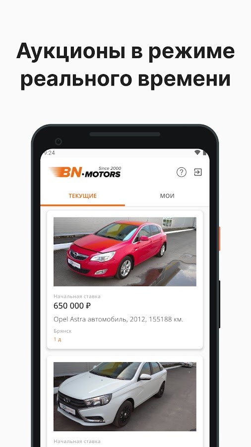 Приложение по продаже на аукционе автомобилей от компании БН Моторс