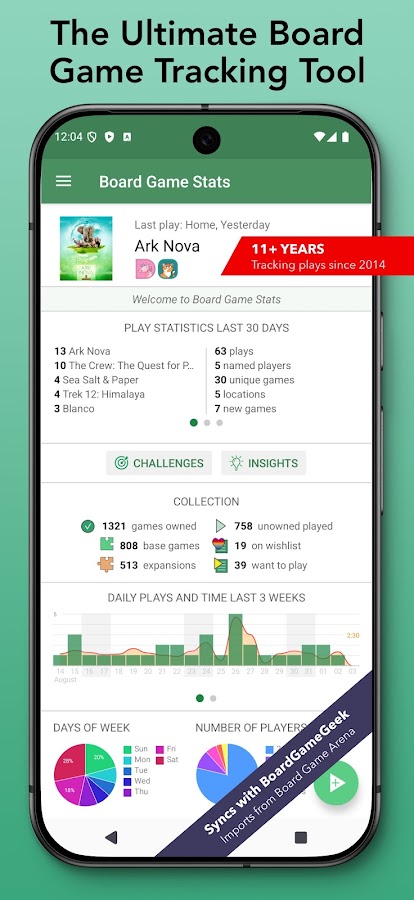 — Синхронизация игровых тегов с BoardGameGeek. — Создавайте испытания (если доступны) на основе игровых фильтров или тегов.