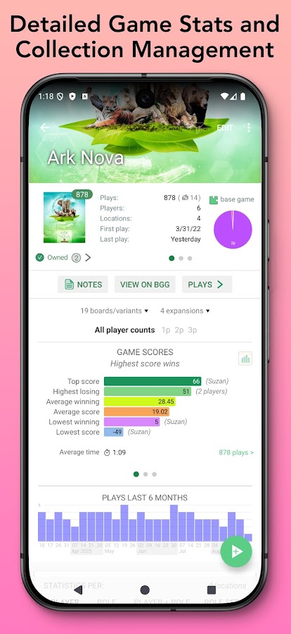 С помощью Board Game Stats (сокращенно BG Stats) вы можете отслеживать свою коллекцию, игры и результаты в удобном инструменте.