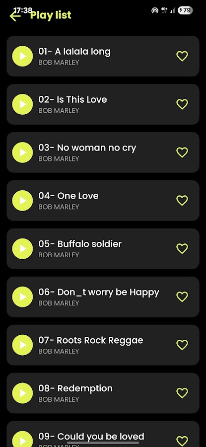 Самые замечательные песни исполнителя Боба Марли в одном приложении и без сети, надеемся, что вам понравится