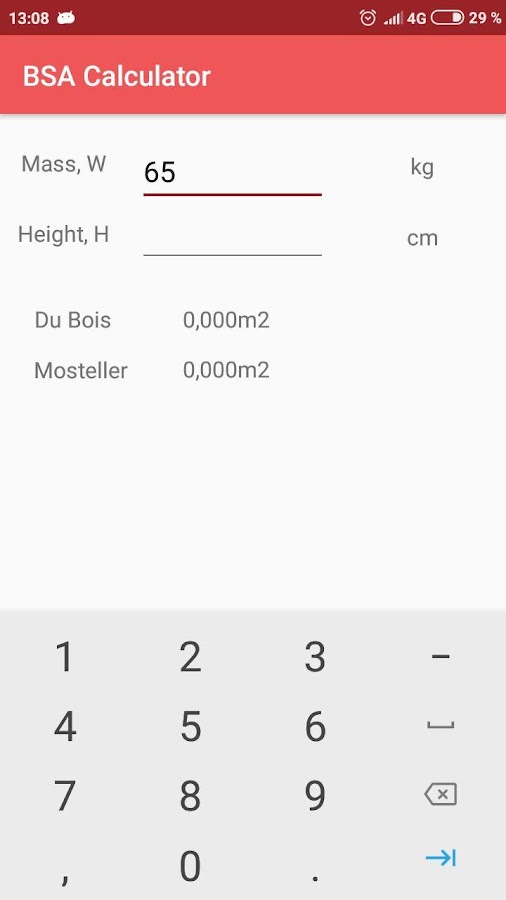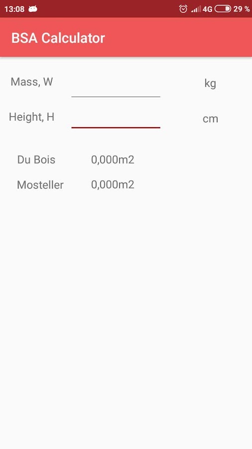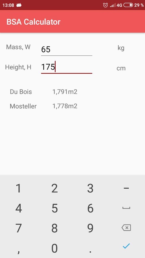 В данном приложении расчеты производятся по формулам Дюбуа и Мостеллера, которые являются наиболее используемыми.