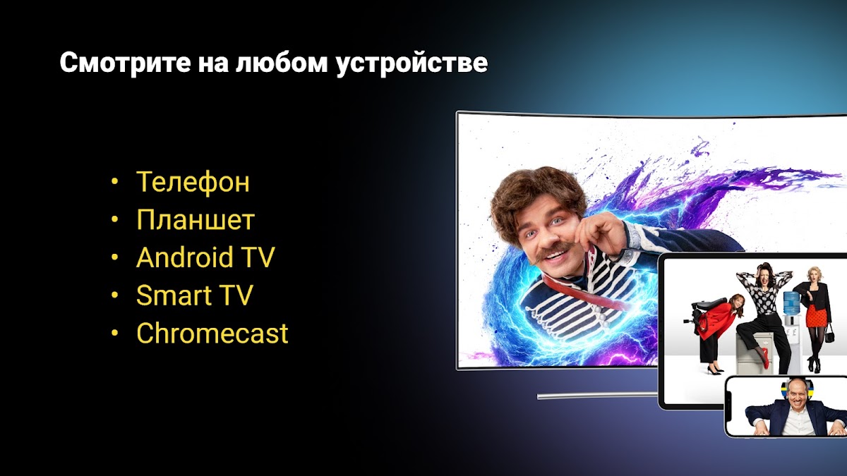 Большое ТВ — ваш персональный онлайн-кинотеатр. Вы можете смотреть фильмы, сериалы и телеканалы на вашем Android TV.