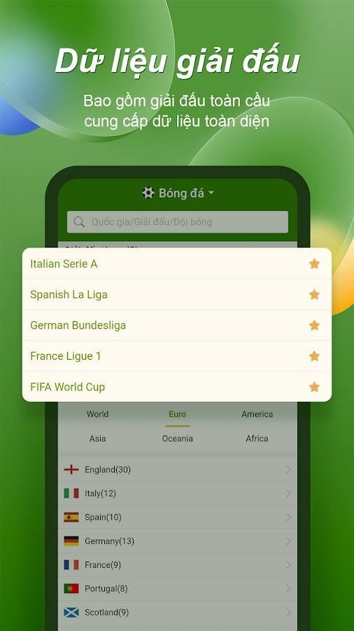 Футбол: всесторонние обновления Премьер-лиги, Лиги чемпионов, Ла Лиги, Серии А, Бундеслиги, Лиги 1, а также популярных турниров, таких как V.League, Brasileirão Série A, EURO, World Cup, FIFA Club World Cup, Asian Cup, AFF Cup и т. д.