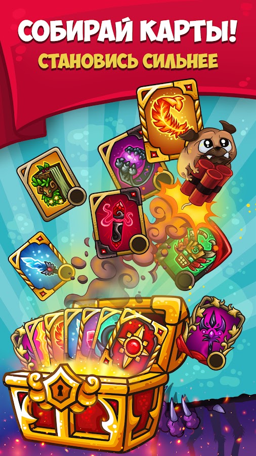 — Коллекционные карты: собери коллекцию из более чем 80 боевых карт (оружие, питомцы, магия, апгрейды для башни)