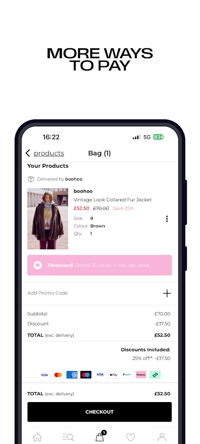 В boohoo мы понимаем важность удобства, когда дело касается покупок в Интернете. Вот почему наше приложение предлагает вам простой в использовании интерфейс с тысячами продуктов под рукой; Покупайте товары от boohoo, boohooMAN, Misspap и Nasty Gal в одном месте. Вы можете быстро добавить любимые товары в список желаний, войти в свою учетную запись и автоматически синхронизировать корзины на всех устройствах. Благодаря множеству вариантов оплаты, а также быстрой и безопасной оплате покупки с boohoo станут проще простого.