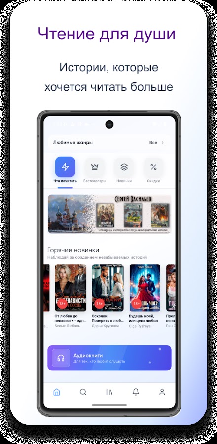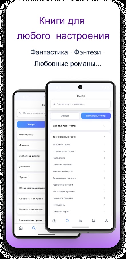 В приложении собрана большая библиотека художественной литературы: любовные романы, фэнтези, фантастика, детективы и другие популярные жанры.
