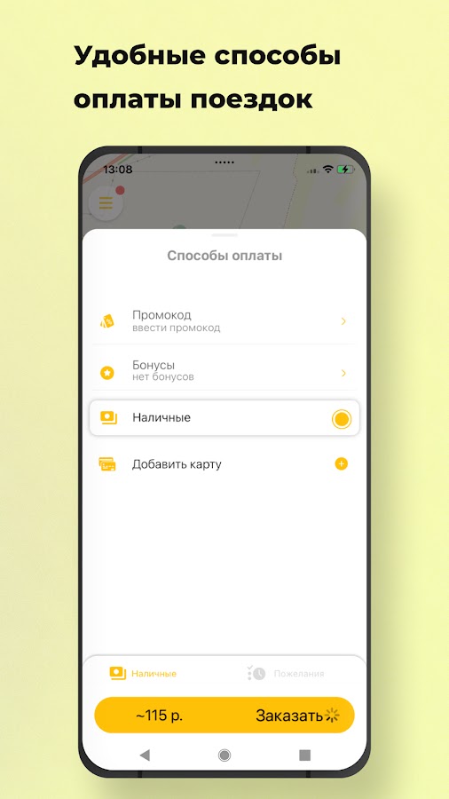 Оплачивайте поездки наличными, картой или накопленными бонусами.