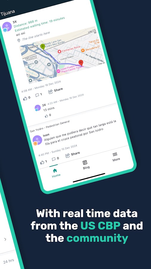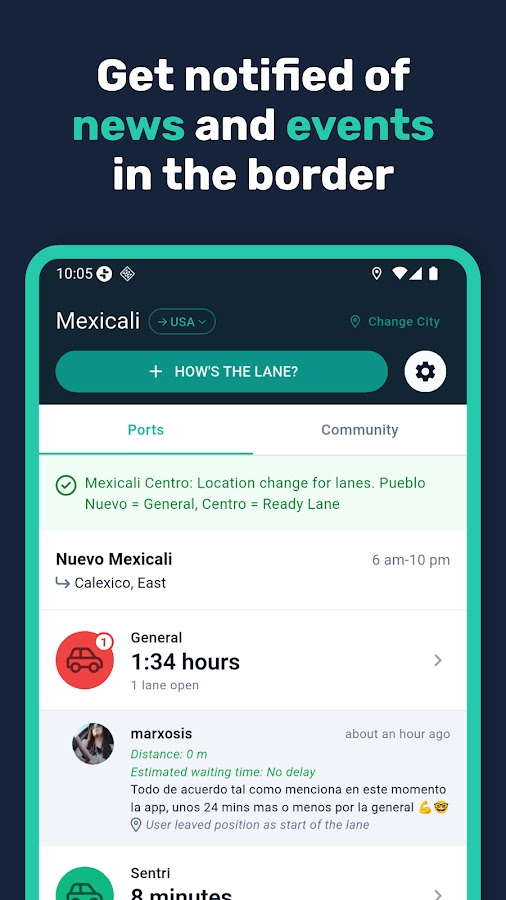 Официальное время ожидания — лишь часть картины. Функция сообщества Bordify позволяет пересекающим границу делиться обновлениями в режиме реального времени, включая фотографии текущей ситуации в очередях, места начала очереди, определенные по GPS, и подтвержденное время ожидания после завершения пересечения границы.