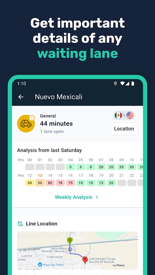 Сравнивайте время ожидания на нескольких пунктах пропуска, чтобы найти самый быстрый вариант. Настройте, какие пункты пропуска отображаются и в каком порядке, чтобы наиболее часто используемые вами пункты пропуска всегда были на виду.