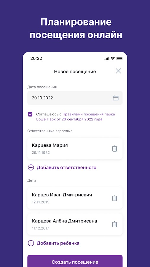 «Боше Парк» — сеть парков активного семейного отдыха. В нашем мобильном приложении Вы получаете самые выгодные персональные предложения и накапливаете баллы, которыми можно расплатиться в парке. «Боше Парк» — это все аттракционы по цене 1 билета для ребенка.