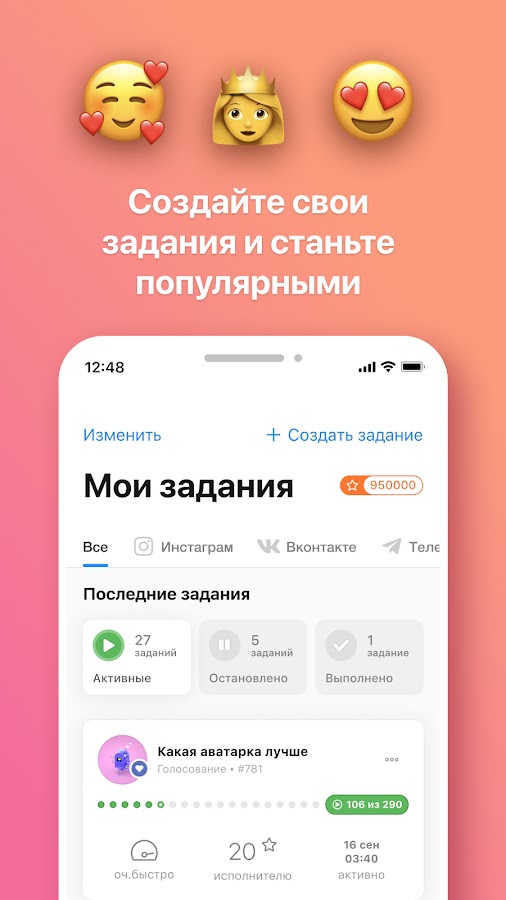 Выполняйте задания, получайте вознаграждения, баллы. Создавайте свои задания, оплачивайте баллами и становитесь популярными!