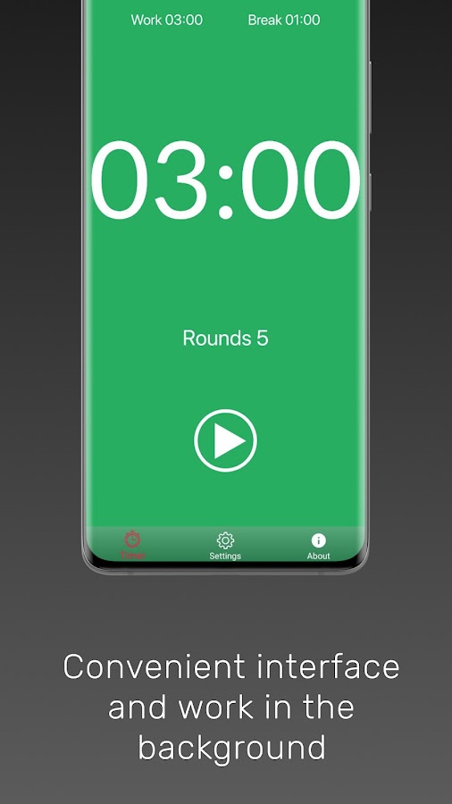 В приложении есть все для того, чтобы настроить таймер бокс. Также он отлично подойдет для бега, делать пресс в домашних условиях, поможет в похудении в домашних условиях, так как имеет гибкие настройки времени.