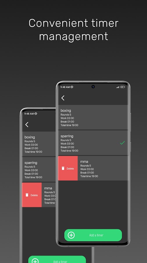Боксерский таймер активности можно использовать для таких видов единоборств как: MMA, UFC, бокс, кикбоксинг, тайский бокс, K1, M1, карате. Таймер для тренировок отлично подойдет для тренеров, так как там есть множество настроек для любого режима тренировок. Вам не нужен больше секундомер для тренировок, так как удобный табата таймер есть в вашем телефоне. Вы можете настроить время под себя и под вашу активность, будь то тайский бокс дома, кардио в зале или просто табата таймер для тренировок. Тренер бокса выбирает самое лучшее!